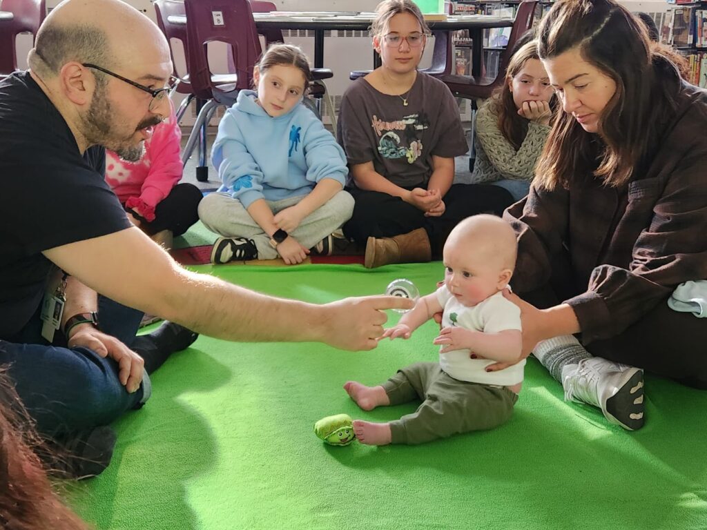 A baby interacts with a class during a Roots of Empathy visit. Photo Courtesy Roots of Empathy